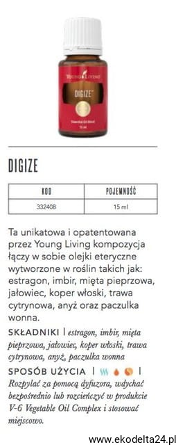 DiGize™ - jest kombinacją ośmiu wspaniałych olejków eterycznych, który przyczynia się do utrzymania zdrowego układu trawiennego.